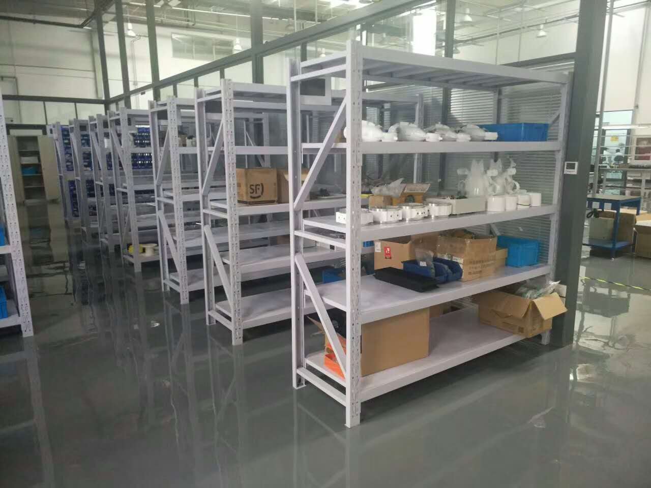 中型貨架,屬于倉儲貨架的一種,擱板貨架類型。是按貨架的承載量來區(qū)分與命名的。按照這一劃分原則中型貨架介于輕型貨架和重型貨架之間,故名中型貨架。通常貨架承載150kg/-800kg層(貨架載荷絕大多數(shù)是以層為單位的承載量計算) 中型貨架是由立柱,橫梁,層板組裝而成..
